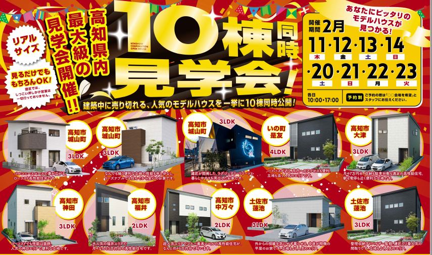 【高知市・南国市・土佐市人気エリアに多数】10棟見学会開催!