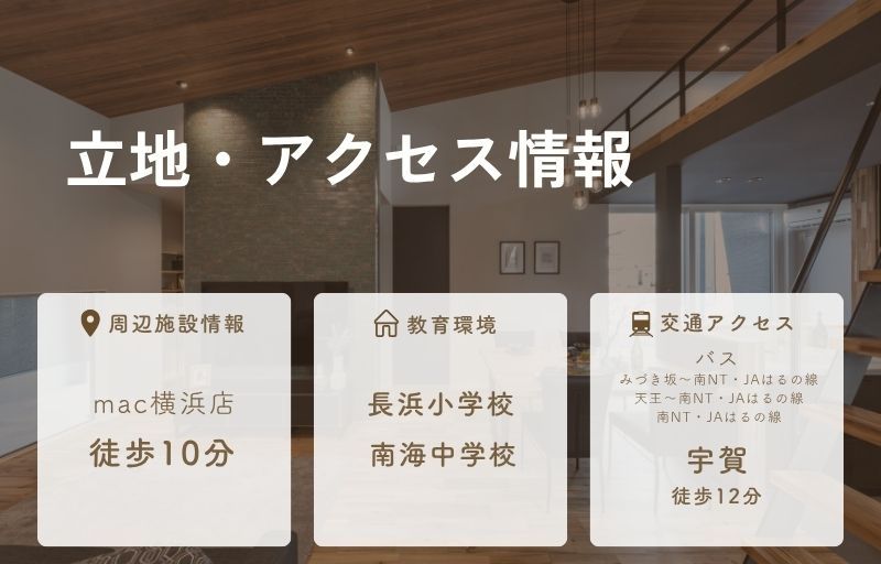 | 最寄バス停 | 長浜バイパスバス停 | 徒歩分数 | 12分 |