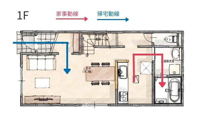 | 設備 | トイレ2ヶ所、浴室乾燥機、システムキッチン、食器洗浄乾燥機、ウォークインクローゼット、床下収納、洗髪洗面化粧台、照明器具、プロパンガス、上水道、インターネット、モニタ付インターホン、ディンプルキー、駐車場3台分 | ||