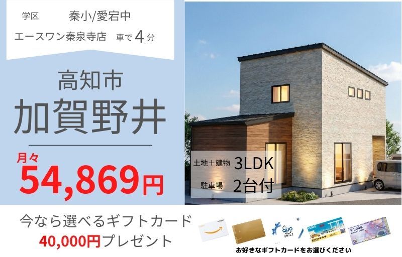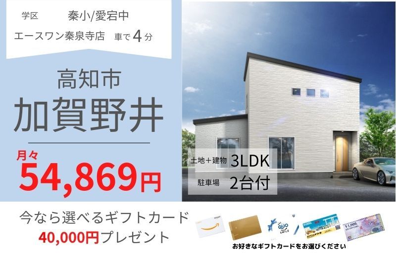 | 設備 | 温水洗浄便座、トイレ2ヶ所、浴室乾燥機、システムキッチン、食器洗浄乾燥機、ウォークインクローゼット、洗髪洗面化粧台、プロパンガス、上水道、下水道、エアコン、モニタ付インターホン、駐車場2台分 | ||
